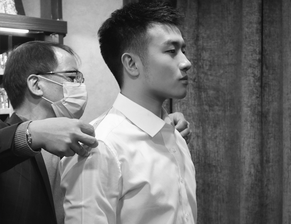 Less More精品店的資深量體師為您量體及試衣,定制更合身合體